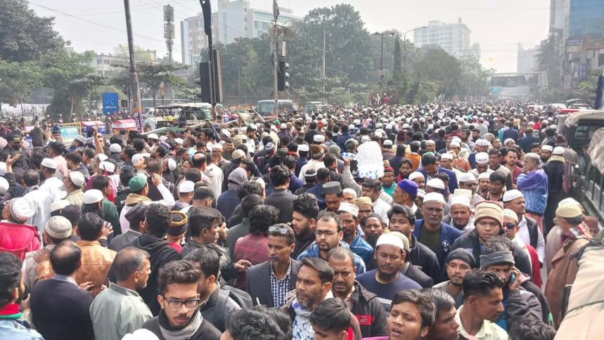 দুপুর সোয়া ১টার দিকে দেখা যায়, জানাজায় যোগ দিতে মানিক মিয়া অ্যাভিনিউয়ের দিকে মানুষের ঢল নেমেছে। অনেকেই পায়ে হেঁটে জানাজাস্থলে যাচ্ছেন।