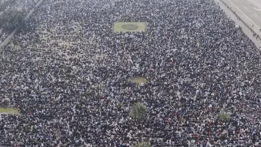 বিএনপি চেয়ারপারসন খালেদা জিয়ার জানাজায় অংশ নিতে মানুষের ঢল নেমেছে রাজধানীর মানিক মিয়া অ্যাভিনিউ এবং সংসদ ভবনের সামনের মাঠে।