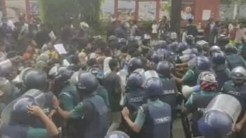 ঘটনাস্থল থেকে দ্য ডেইলি স্টারের সংবাদদাতা জানান, সকাল ১১টায় প্রায় ১০০ জন শিক্ষার্থী জড়ো হন। পরে সেখানে আগে থেকেই অবস্থান নেওয়া পুলিশ তাদের বাধা দেয়। এরপর আরও শিক্ষার্থী যোগ দিয়ে স্লোগান দিতে শুরু করে। তখন পুলিশ ক্যাম্পাসের ভেতরে চলে যায়। বর্তমানে ২০০-৩০০ শিক্ষার্থী বিশ্ববিদ্যালয়ের প্রধান ফটকে অবস্থান নিয়ে আছেন।