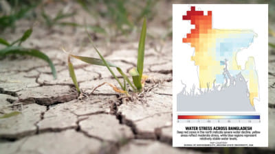 রাজশাহীর গোদাগাড়ী উপজেলার সাঁওতাল কৃষক কংগ্রেস টুডু তার আমন ধানের খেত দেখাচ্ছিলেন। ফেটে চৌচির হয়ে যাওয়া জমির দিকে ইঙ্গিত করে তিনি বলেন, ‘সপ্তাহখানেক সেচ না পেলে মাটি শুকিয়ে এমন ফেটে যায়।’