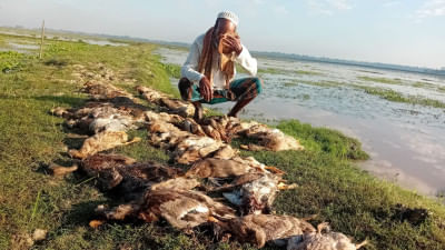 মৌলভীবাজারের জুড়ীর গোবিন্দপুর গ্রামের কৃষক চেরাগ আলী। বৃহস্পতিবার ভোরবেলা তিনি তার খামারের প্রায় ৫০০ হাঁসকে খাবারের জন্য ছেড়ে দিয়েছিলেন হাওড়ে। সন্ধ্যা নাগাদ সেই হাঁসগুলোর বেশিরভাগকেই পাওয়া গেল মৃত...