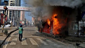 রাজধানীর কাকরাইল এলাকায় বাসে আগুন দেওয়া দুই যুবক পুলিশের ভেস্ট পরিহিত ছিলেন বলে অভিযোগ উঠেছে।
