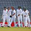 শেষ জুটি হিসেবে ক্রিজে আছেন তাইজুল ইসলাম ও শরিফুল ইসলাম। তাইজুল ২১ বলে ৮ ও শরিফুল ৩ চারে ৮ বলে ১৩ রানে খেলছেন। অপরাজিত থাকা তাইজুল বাদে বাংলাদেশের বাকি সব ব্যাটার পেয়েছেন দুই অঙ্কের দেখা। তবে ফিফটি করতে পারেন কেবল ওপেনার মাহমুদুল হাসান জয়। টেস্ট ক্যারিয়ারের চতুর্থ হাফসেঞ্চুরি হাঁকিয়ে তিনি থামেন ৮৬ রানে।