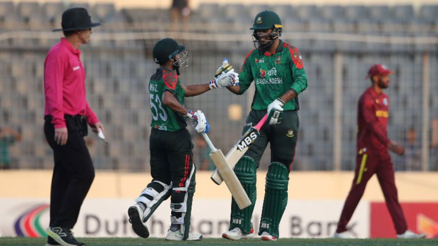 মঙ্গলবার মিরপুর শেরে বাংলা জাতীয় ক্রিকেট স্টেডিয়ামে সিরিজের দ্বিতীয় ওয়ানডে ম্যাচে টস জিতে ব্যাটিংয়ে নেমে নির্ধারিত ৫০ ওভারে ৭ উইকেটে ২১৩ রান করেছে বাংলাদেশ। অর্থাৎ সিরিজে টিকে থাকতে হলে ২০১৪ রান করতে হবে ক্যারিবিয়ানদের।