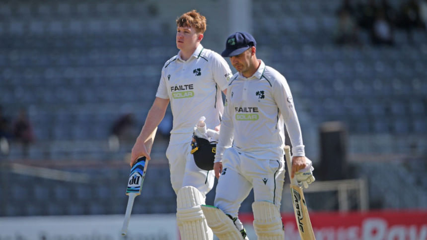 এক প্রান্ত ধরে রেখে লড়াই চালিয়ে যান অ্যান্ডি ম্যাকব্রাইন। তুলে নেন ধীর-স্থির এক ফিফটি, ১০২ বলে। এখন অভিষিক্ত জর্ডান নিলকে নিয়ে আয়ারল্যান্ডকে প্রতিযোগিতায় রাখতে লড়ে যাচ্ছেন এই অভিজ্ঞ বাঁহাতি। স্কোরবোর্ডে এখন পর্যন্ত ১৬ রান যোগ করে অপরাজিত আছেন এ দুই ব্যাটার। ম্যাকব্রাইন ৫২ ও নিল ৬ রানে ব্যাটিং করছেন।