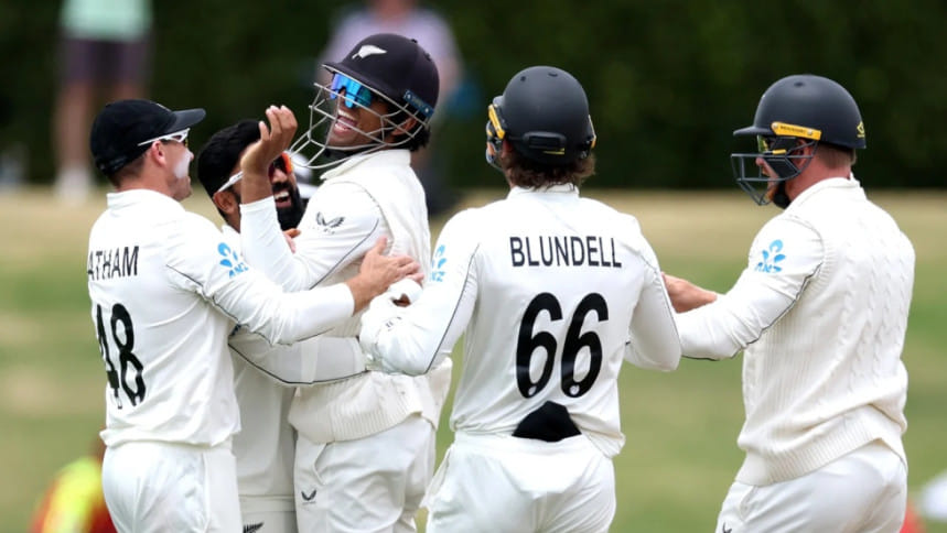৪২ রানে ৫ উইকেট নিয়ে কিউইদের নায়ক ডাফি। বাঁহাতি স্পিনার এজাজ ২৩ রানে নেন ৩ উইকেট। তিন টেস্টের সিরিজে প্রথমটি ড্র হওয়ার পর বাকি দুটি জিতে সিরিজ নিশ্চিত করেছে স্বাগতিক দল।