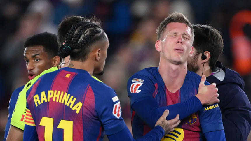 অ্যাতলেতিকো মাদ্রিদের ম্যাচে দানি ওলমোর দুর্দান্ত গোলেই ম্যাচে ফিরেছিল বার্সেলোনা। বক্সের ভেতরে লেভানদোভস্কির দারুণ টাচে বল পেয়ে ওলমো বাঁ পায়ে নিচু শটে ইয়ান অবলাককে পরাস্ত করেন। তবে গোলটির মুহূর্তেই ভারসাম্য হারিয়ে পড়ে গিয়ে বাজেভাবে আঘাত পান তিনি। সেই পড়া থেকেই তার বাঁ কাঁধে আবারও জায়গা-চ্যুত হয়ে গুরুতর চোট লাগে।