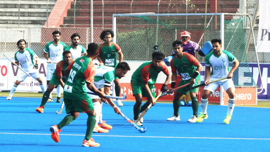 শক্তি, সামর্থ্য ও র্যাঙ্কিংয়ে বাংলাদেশের চেয়ে অনেক এগিয়ে পাকিস্তান। তারপরও লড়াইয়ের প্রত্যয় নিয়েই মাঠে নেমেছিল বাংলাদেশ হকি দল। তবে মাঠে তার প্রমাণ পাওয়া যায়নি। পাকিস্তানের কাছে বিধ্বস্ত হয়ে বাংলাদেশের বিশ্বকাপ বাছাই অভিযাত্রা শুরু হলো হতাশাজনকভাবে।