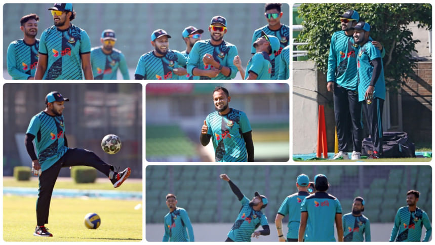 খেলা শুরুর আগের দিন (মঙ্গলবার) শেরে বাংলা স্টেডিয়ামে দলের অনুশীলনে মুশফিককে দেখা গেল খোশ মেজাজে। আর সেসব মুহূর্ত ধরা পড়ল দ্য ডেইলি স্টারের আলোকচিত্রী ফিরোজ আহমেদের লেন্সে।