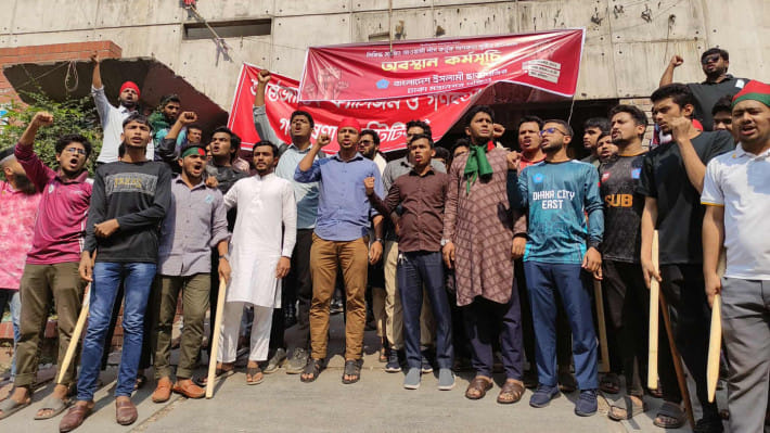 রেলওয়ের অব্যবস্থাপনা বন্ধে ৬ দফা দাবিতে কমলাপুর স্টেশনে গিয়ে বাধা পেয়ে এবার শাহবাগ মোড়ে অবস্থান কর্মসূচি করছেন ঢাকা বিশ্ববিদ্যালয়ের শিক্ষার্থী মহিউদ্দিন রনি।