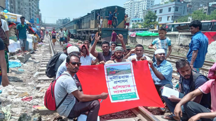 রাজধানীর কারওয়ান বাজারে এফডিসি রেলগেট এলাকা থেকে সরে গিয়ে এবার রাজধানীর আব্দুল গনি রোডে অবস্থিত রেলভবনে অবস্থান নিয়েছেন রেলওয়ের আন্দোলনরত অস্থায়ী শ্রমিকরা।
