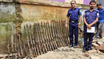 ঠাকুরগাঁও শহরের আশ্রমপাড়ায় একটি নির্মাণাধীন বাড়ি থেকে ২৭টি আগ্নেয়াস্ত্রসহ ৯৭১টি গুলি উদ্ধার করেছে পুলিশ।