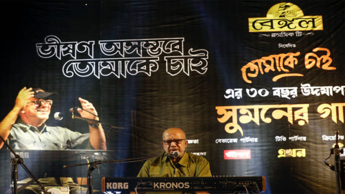 বয়স ৭০ পেরিয়েছে। অশক্ত শরীর গিটার ধরতেও বাগড়া দিচ্ছে ইদানিং। কিন্তু আগের সেই দৃপ্ত কণ্ঠ রয়ে গেছে গানওলার। ওই কণ্ঠেই উচ্চারিত গানের প্রতিটি কলি, বলিষ্ঠ উচ্চারণ আর সুরের প্রতিটি ভাঁজ বলে দিলো-...