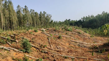 কেটে ফেলা গাছগুলো জব্দ করে এক ইউপি সদস্যের জিম্মায় রাখা হয়েছে।