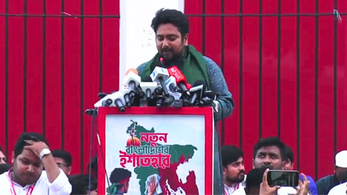নাহিদ ইসলাম এনসিপির ‘নতুন বাংলাদেশের ইশতেহার’ শীর্ষক ২৪ দফা ইশতেহার ঘোষণা করেন।