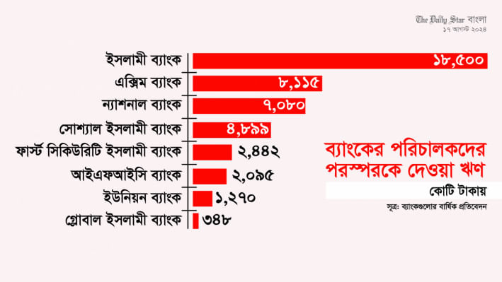 আটটি ব্যাংকের পরিচালকরা পারস্পরিক যোগসাজসে ২৫ হাজার কোটি টাকা ঋণ নিয়েছেন। এর বাইরে চারটি ব্যাংক পরিচালকদের আত্মীয়দের প্রায় ২০ হাজার কোটি টাকা ঋণ দিয়েছে।