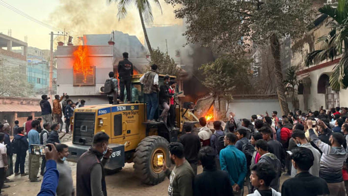 বিকেল ৪টার দিকে কয়েকশ বিক্ষুব্ধ ছাত্র-জনতা আওয়ামী লীগ কার্যালয়ের সামনে জড়ো হয়।