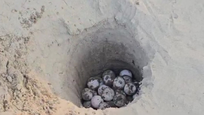 বেলাভূমিতে গর্ত করে প্রায় আধা ঘণ্টা অবস্থান নিয়ে ১১৬টি ডিম পাড়ে এটি।