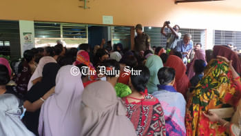কুমিল্লা শহরের ঠাকুরপাড়ায় মডার্ন প্রাইমারি স্কুল। স্কুলের গেটে নারী ভোটারদের ভিড়। আইনশৃঙ্খলা বাহিনীর কয়েকজন সদস্যকে সেই ভিড়ে দেখা যায়। তাদেরকে লক্ষ্য করে কয়েকজন নারী বলছেন, ‘ভেতরে ঢুকতে দিচ্ছেন না...
