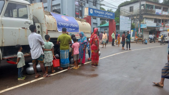 ‘বন্যায় টিউবওয়েলসহ পানির সব উৎস ডুবে যাওয়ায় গত ৩ দিন ধরে খাবার পানির চরম সংকটে আছি।’