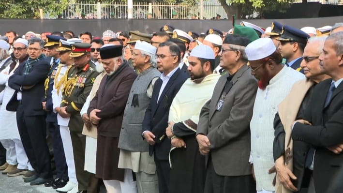আজ বুধবার মানিক মিয়া অ্যাভিনিউতে বেলা ৩টা বেজে ২ মিনিটে খালেদা জিয়ার জানাজা শুরু হয়।