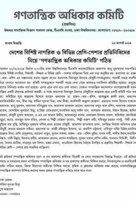 গতকাল বৃহস্পতিবার ঢাকা বিশ্ববিদ্যালয়ের টিএসসি ক্যাফেটেরিয়ায় এক সভা থেকে ইমেরিটাস অধ্যাপক সিরাজুল ইসলাম চৌধুরীকে আহ্বায়ক করে এই কমিটি গঠন করা হয়।