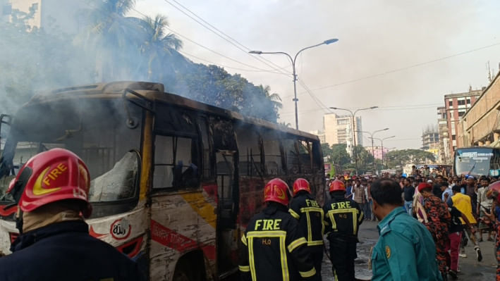 ‘আগুন দেওয়া গাড়িগুলোর মধ্যে চারটি বাস, একটি লরি ও একটি ট্রাক রয়েছে।’
