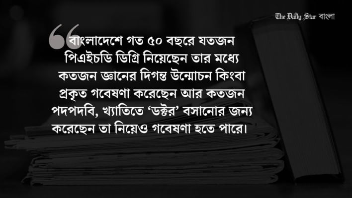 একসময় পিএইচডি ডিগ্রি ছিল জ্ঞানসাধনা ও গবেষণার ব্যাপার, কালের বিবর্তনে পরিণত হয়েছে পানিতে মেশানো দুধের মতো।