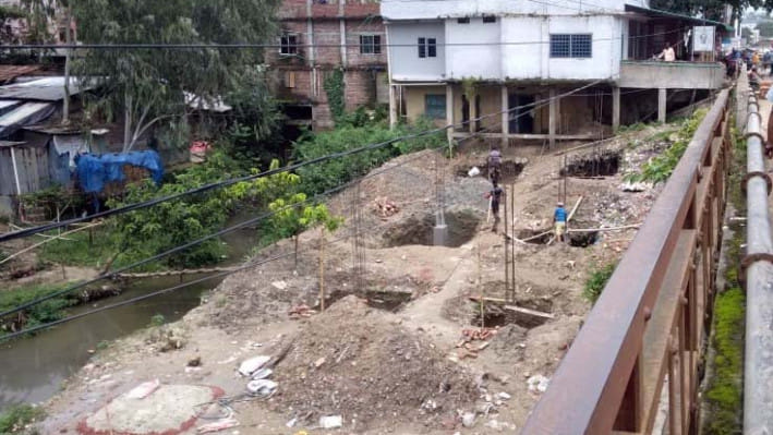 সব ধনের নিয়ম উপেক্ষা করে দিনাজপুরের ফুলবাড়ী উপজেলায় ছোট যমুনা নদীগর্ভে একটি ঝুঁকিপূর্ণ সেতুর নিচে নির্মাণ করা হচ্ছে ক্ষমতাসীন আওয়ামী লীগের বহুতল দলীয় কার্যালয়।