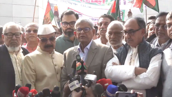 মির্জা ফখরুল বলেন, ‘শেখ মুজিব হত্যাকাণ্ডের সঙ্গে জিয়াউর রহমানকে যুক্ত করে ভুল তথ্য ছড়িয়ে ইতিহাস বিকৃত করা হচ্ছে এবং চলমান আন্দোলন বানচাল করার চেষ্টা করা হচ্ছে।'