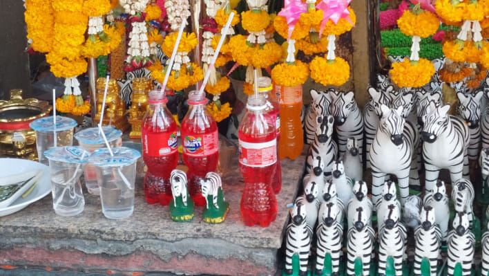 অনেক জেব্রার গলায় মালা ঝুলছে, অনেক জেব্রার সামনে আবার রাখা আছে কোমল পানীয় ‘ফান্টা’।