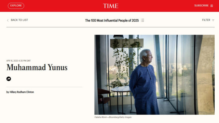 ম্যাগাজিনের অধ্যাপক ইউনূসকে নিয়ে মুখবন্ধটি লিখেছেন যুক্তরাষ্ট্রের সাবেক পররাষ্ট্রমন্ত্রী হিলারি ক্লিনটন।