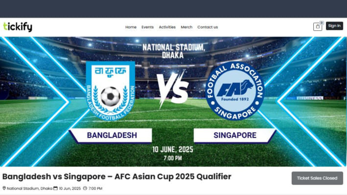 বাংলাদেশ-সিঙ্গাপুর ম্যাচের টিকিট বিক্রি ‘বন্ধ’