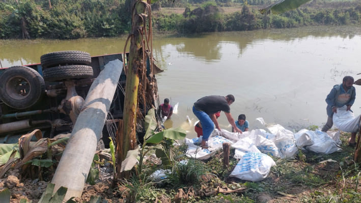 ঘনকুয়াশায় কুষ্টিয়ায় সারবোঝাই ট্রাক খালে