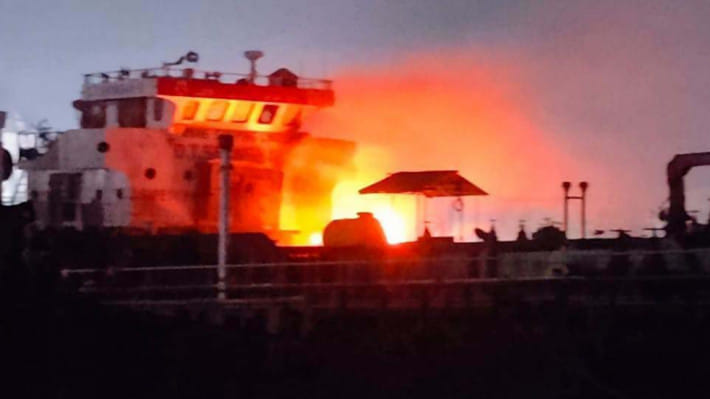 বন্দরে তেল খালাস করার পর খালি জাহাজটি ঘাটে নোঙর করা ছিল।