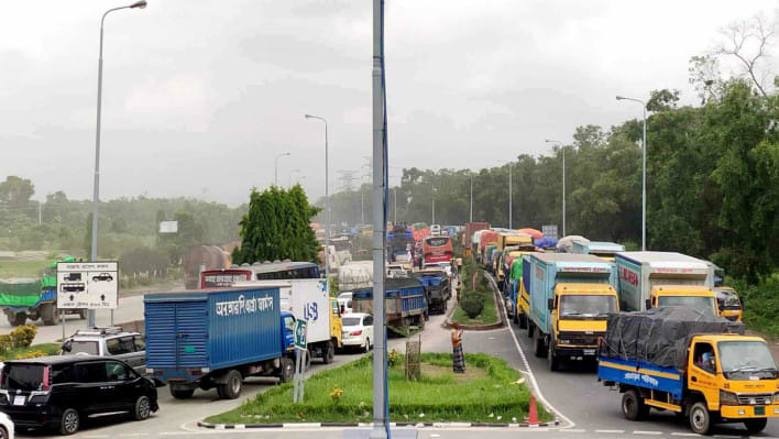ঢাকামুখী গাড়ি বঙ্গবন্ধু সেতু পার হওয়ার পরে ভূঞাপুরের দিকে পাঠাচ্ছে ট্রাফিক বিভাগ। ভূঞাপুর সড়কেও সকালে যানবাহনের দীর্ঘ সারি দেখা গেছে।