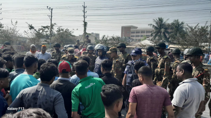 ‘আজকে নিয়ে পাঁচদিন ধরে আন্দোলন করছি। আমরা এখনো কর্তৃপক্ষের কাছ থেকে বকেয়া বেতন পাওয়ার কোনো আশ্বাস পাইনি।’