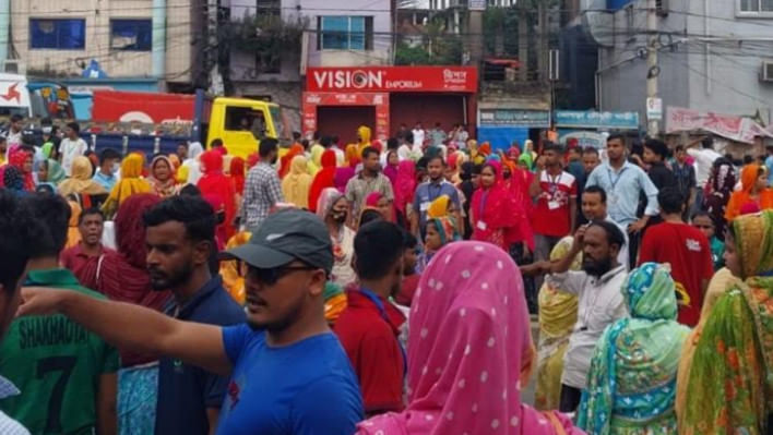 সকাল ৯টা থেকে বাঘের বাজার এলাকায় তারা মহাসড়ক অবরোধ করেন শ্রমিকেরা