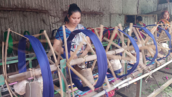আসন্ন দুর্গাপূজা উপলক্ষে টাঙ্গাইল শাড়ির বিক্রি বেড়েছে। উৎসবের দিনগুলোতে বাহারি রঙ ও বৈচিত্র্যপূর্ণ ডিজাইনের জন্য স্থানীয় দক্ষ কারিগরদের হাতে তৈরি এসব শাড়ির চাহিদা বরাবরই আছে।