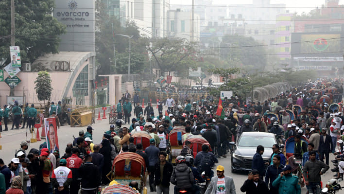 আজ দুপুর প্রায় ২টার দিকে এভারকেয়ার হাসপাতালের সামনে গিয়ে দেখা যায়, হাসপাতালের বাইরে সড়কের পাশে ব্যানার হাতে দাঁড়িয়ে আছেন বিএনপির সমর্থকেরা।