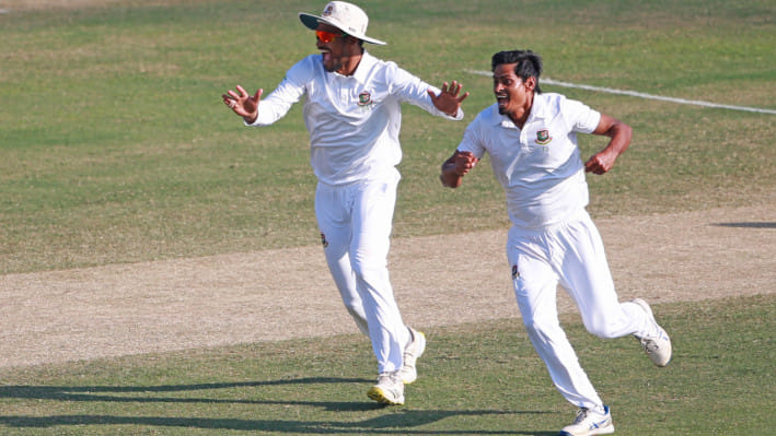 ব্যাটারদের কল্যাণে দুই ইনিংসেই তিনশ ছাড়ানোর পর তাইজুলের বোলিং নৈপুণ্যে স্মরণীয় জয়ের পথে নাজমুল হোসেন শান্তর দল।