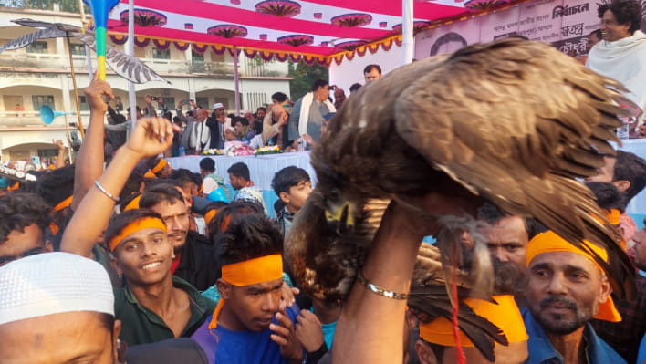নরসিংদী-৫ (রায়পুরা) আসনে নির্বাচনী আচরণবিধি লঙ্ঘন করে জ্যান্ত ভুবন চিল নিয়ে মিছিল করেছেন ঈগল প্রতীকের স্বতন্ত্র প্রার্থী মিজানুর রহমান চৌধুরীর কর্মী-সমর্থকরা।