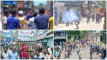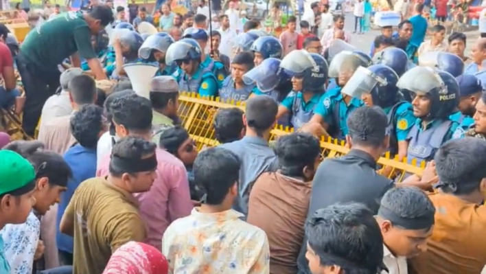 পরিস্থিতি নিয়ন্ত্রণে আনতে পুলিশ কাঁদানে গ্যাস ও রাবার বুলেট ছুড়ে।