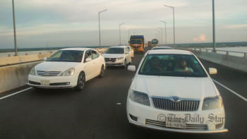 গাড়ি থেকে নেমে পদ্মা সেতুর ওপর দাঁড়ানো এবং ছবি তোলা সম্পূর্ণ নিষেধ—এমন নিয়মের তোয়াক্কা না করে নেতা-কর্মীদের সঙ্গে সেতুর ওপর দাঁড়িয়ে সেলফি তুলেছেন ছাত্রলীগ সভাপতি আল নাহিয়ান খান জয়৷