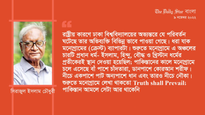 শিক্ষা ও সাংস্কৃতিক ক্ষেত্রে ঢাকা বিশ্ববিদ্যালয়ের অবদানগুলোর একটি হচ্ছে ধর্মনিরপেক্ষতা। বাইরে যখন প্রবল সাম্প্রদায়িক হানাহানি চলছে, এবং দেশ এগিয়ে যাচ্ছে ভাগ হওয়ার দিকে, এই বিশ্ববিদ্যালয় তখন কেবল যে...