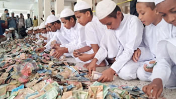 মসজিদের দোতালায় টাকা গণনা চলছে।