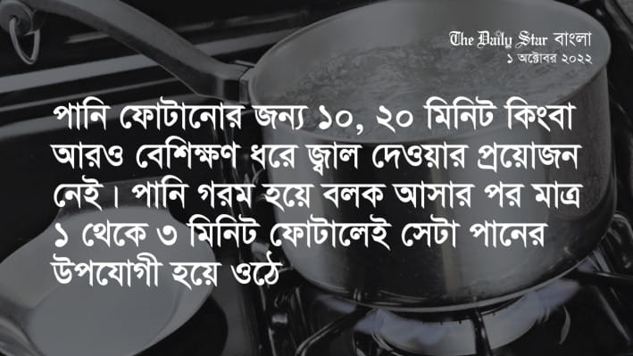 পানি যারা ফুটিয়ে পান করেন, তাদের অনেকেরই জানা নেই ঠিক কতক্ষণ ফোটালে সেটা পানের উপযোগী হয়। এ কারণে অনেকে দীর্ঘক্ষণ ধরে পানি জ্বালাতে থাকেন। তবে বিশেষজ্ঞরা বলছেন, পানি ফোটানোর জন্য ১০, ২০ মিনিট কিংবা...