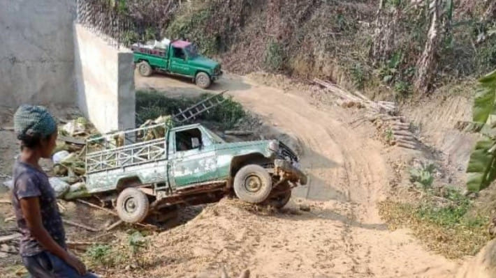 পাহাড়ি পথে নাজেরাট পাড়া এলাকায় নিয়ন্ত্রণ হারিয়ে রাস্তার গাইডওয়ালের সঙ্গে ধাক্কা লেগে গাড়িটি উল্টে যায়।