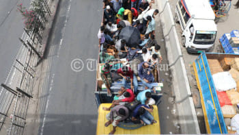 ঈদের ২ দিন আগে ঢাকার অদূরে সাভারের বহু মানুষ বাস না পেয়ে কিংবা অতিরিক্ত ভাড়ার কারণে ট্রাক ও পিকআপে চেপে বাড়ির উদ্দেশে রওনা হয়েছেন, যাদের মধ্যে বেশিরভাগ নিন্ম আয়ের মানুষ।