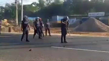 পুলিশ ধারাবাহিকভাবে টিয়ারসেল নিক্ষেপ করে যাচ্ছে।